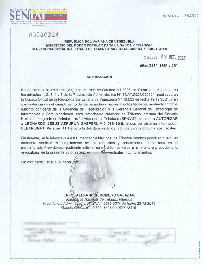 Después de diez largos meses de revisiones, cambios y negociaciones, logramos obtener la autorización para el uso de ClearLight para la emisión de facturas y otros documentos fiscales